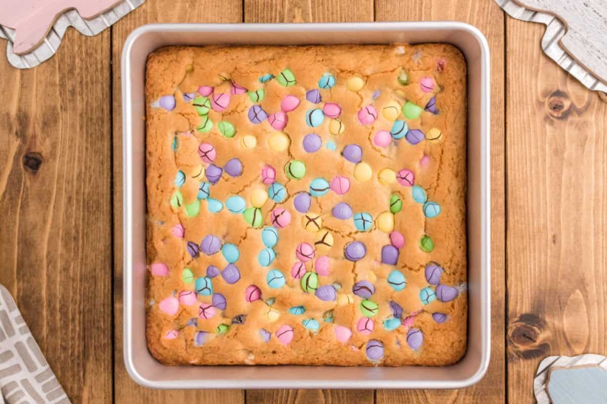 A delicious chewy blondie bar with chocolate chips and caramel swirls, perfect for any occasion.