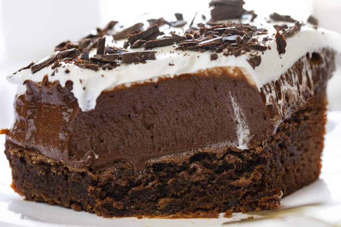 A rich, chocolaty layered brownie topped with silky French silk filling and whipped cream. Perfect for chocolate lovers!