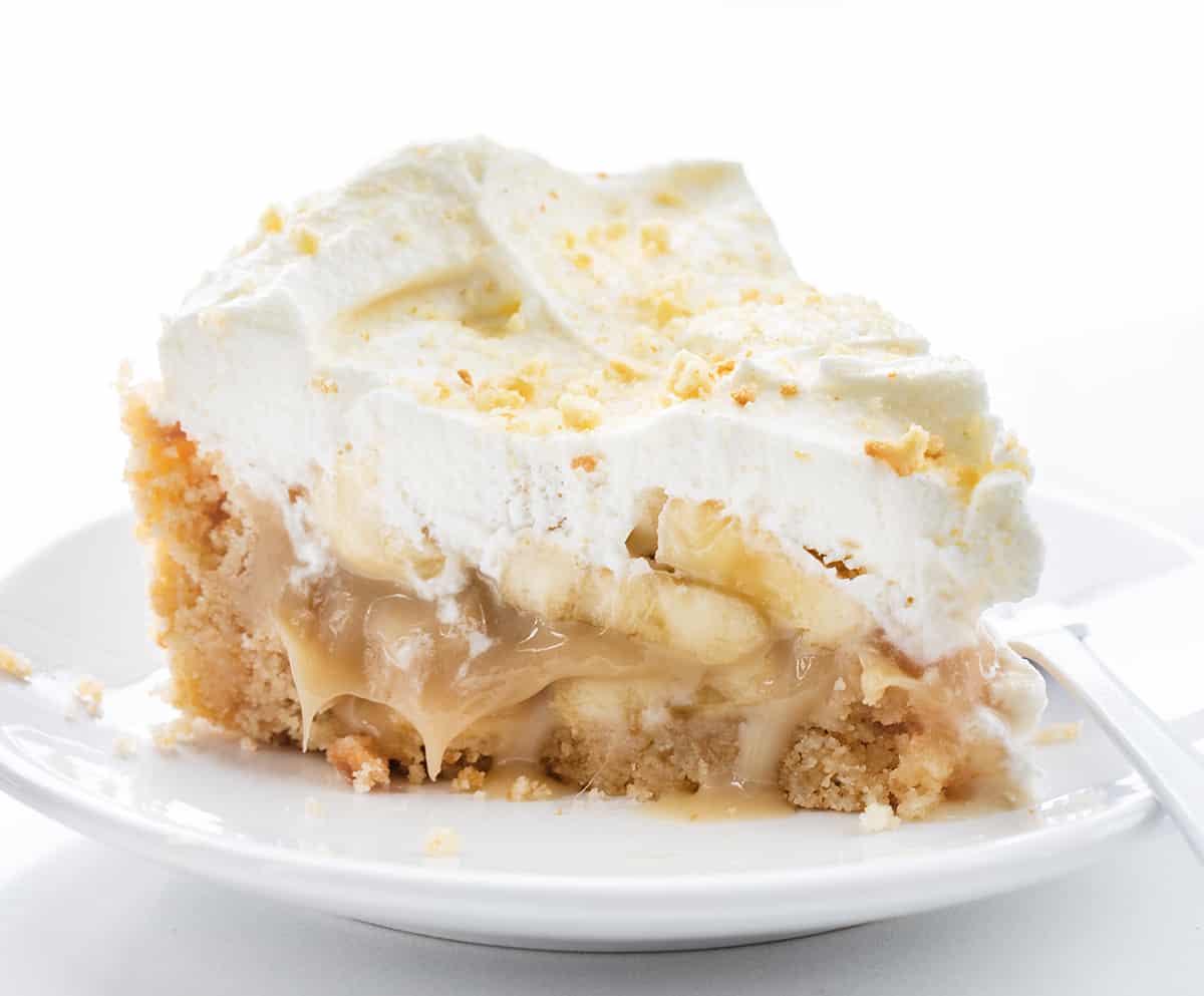 - Remove the caramel from heat and let cool slightly. Slice bananas and layer half on the crust. Pour caramel over bananas, then layer remaining bananas on top.